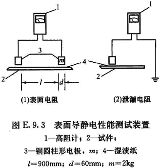 E.9.2 地面、墻面和工作臺面等表面導靜電性能應(yīng)采用符合精度要求的高阻計檢測。
