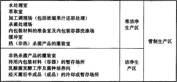 表1 一般食品生產(chǎn)車(chē)間管制生產(chǎn)區(qū)