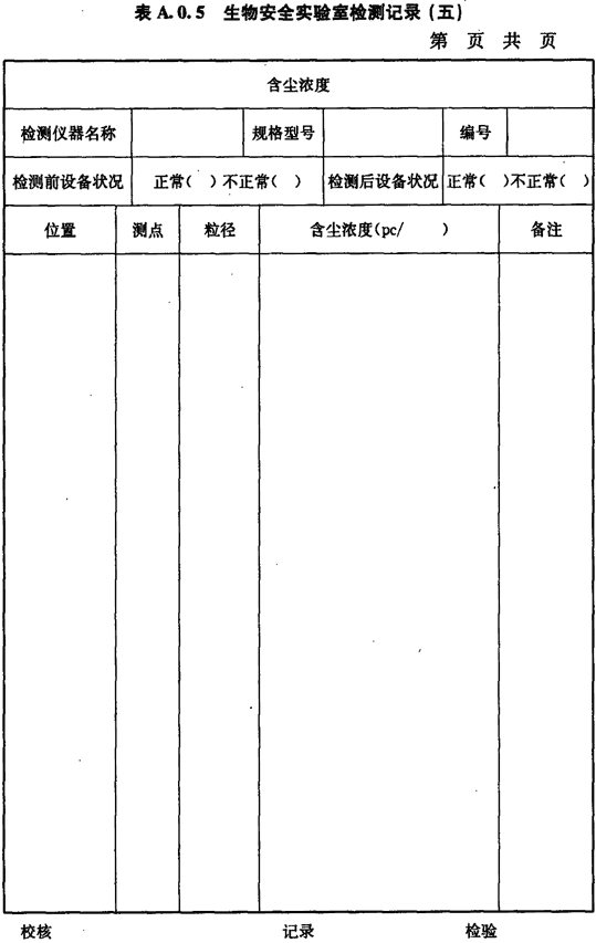 A.0.5.生物安全實(shí)驗(yàn)室房間含塵濃度的檢測(cè)應(yīng)按表A.0.5進(jìn)行記錄。