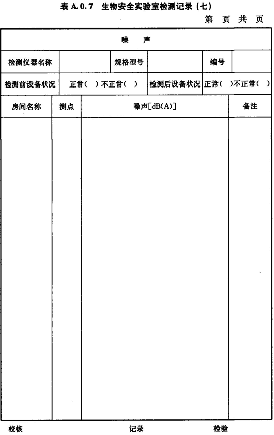 A.0.7 生物安全實(shí)驗(yàn)室房間噪聲的檢測(cè)應(yīng)按表A.0.7進(jìn)行記錄。