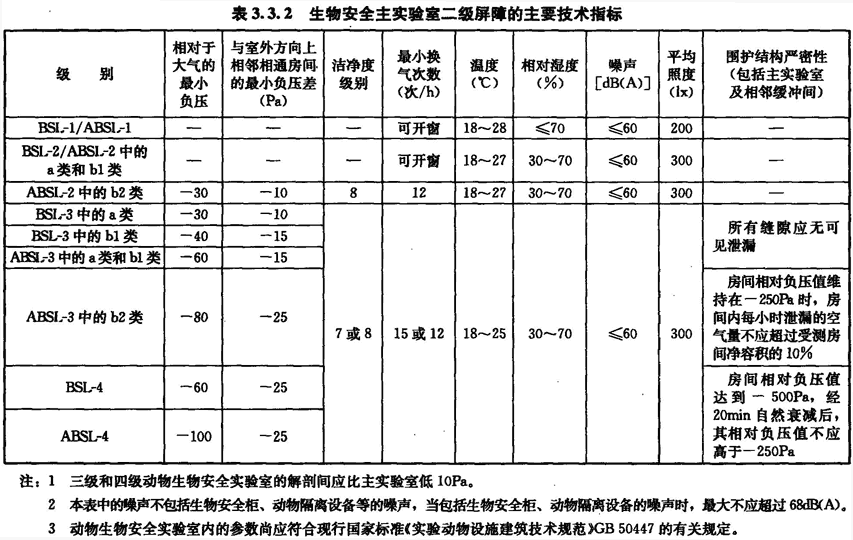 3.3 生物安全實(shí)驗(yàn)室的技術(shù)指標(biāo)