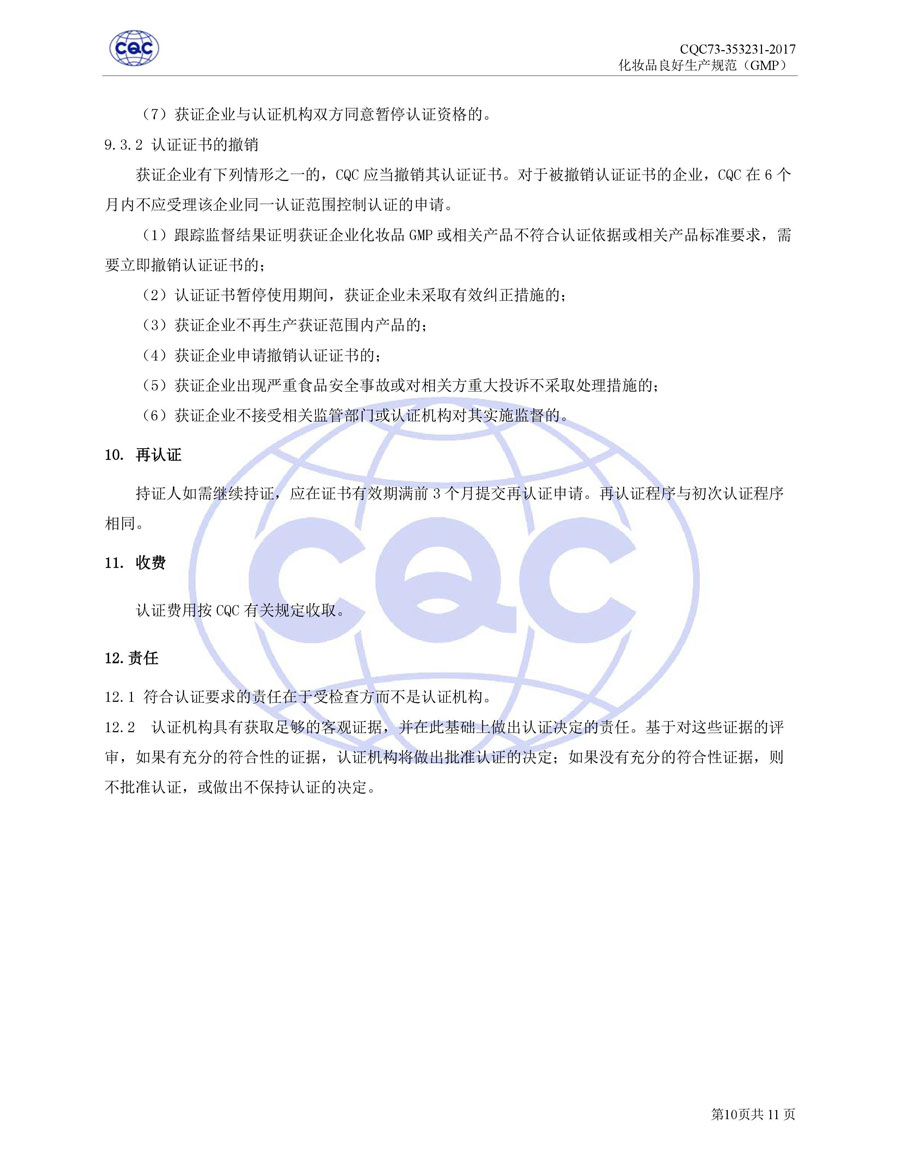 認(rèn)證依據(jù)為美國(guó)農(nóng)業(yè)部《Cosmetic Good Manufacturing Practice Guideline》, European Federation for Cosmetic Ingredients (EFfIC)-GMP for cosmetic ingredient,ISO 22716-2007《化妝品良好生產(chǎn)規(guī)范》、CQC73-353231-2016《化妝品認(rèn)證實(shí)施規(guī)則》及適用的法律法規(guī)等。